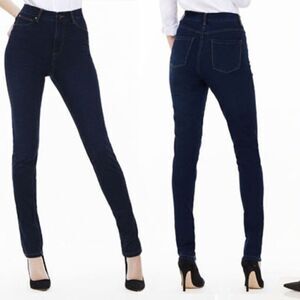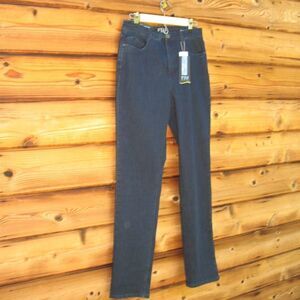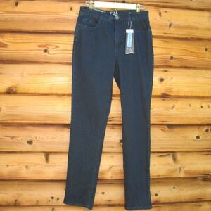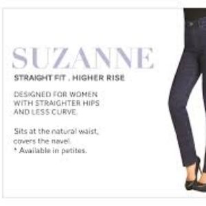 Designed for women with straighter hips and less curve. Sits at the natural waist, covers the navel. Pull-on style with innovative technoslim fabric that slims and flatters your figure. Five-pocket construction. Belt loop waist. Zip fly with button closure. Straight hem.
