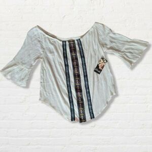 NWT Hint of Blush Boho Top Off the Shoulder Top with Embroidered Detail Size Med