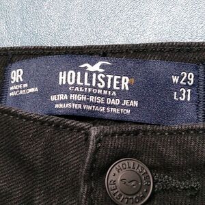 Stylish ultra high-rise dad jeans by Hollister. Dark charcoal/Black color.