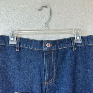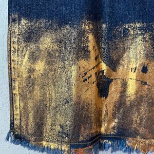 super cute denim skirt with gold paint detail. measures 16 inches in the waist and 22 inches in length