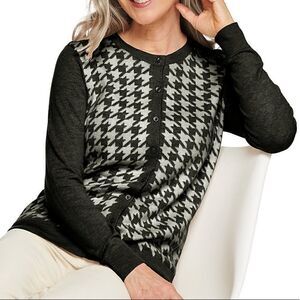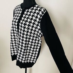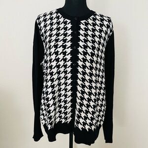 NWT Houndstooth Ribbed Button-Front Cardigan