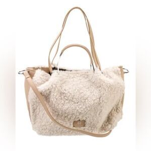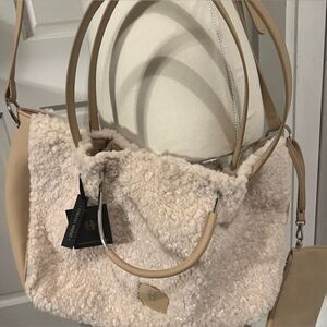 NWT House of Harlow OVERSIZED crossbody convertible Sherpa w metal handles