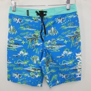 NWT Hurley Neptune Blue Tropical Board Shorts Big Kid Size 12/26