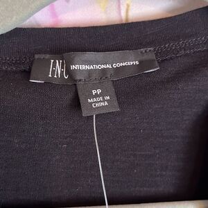 NWT INC INTERNATIONAL CONCEPTS RHINESTONES CRISS CROSS DETAIL TSHIRT SIZE PP. PTP 16” x L 22”. 100% COTTON. Has a cross cross detailingg on the shoulder sets with rhinestone stones.