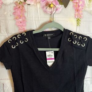 NWT INC INTERNATIONAL CONCEPTS RHINESTONES CRISS CROSS DETAIL TSHIRT SIZE PP