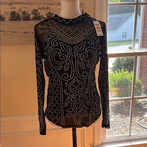 NWT INC International Concepts Black Silver Long Sleeve Studded Blouse