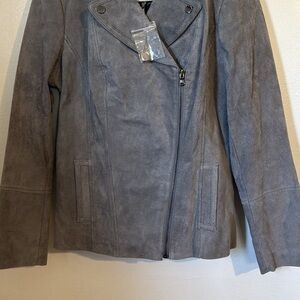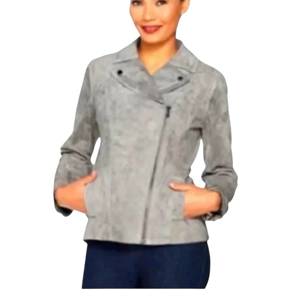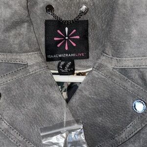 🌹NWT:ISAAC MIZRAHI LIVE LEATHER GRAY MOTO JACKET
