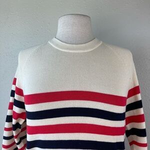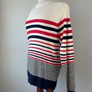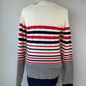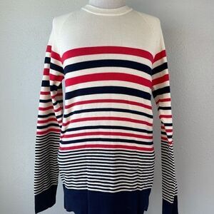 super cute striped men’s sweater measuring 17 inches armpit to armpit and 29 inches shoulder to hem.