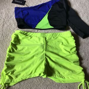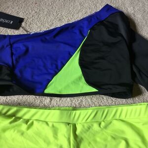 NWT Icon Swim 80s style Retro Neon Green and Blue Two-Piece Set