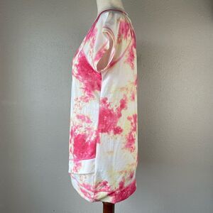 Super fun tie-dye style print on this casual T-shirt by ideology. It is a new condition and measures 19 inches armpit to armpit laying flat and 27 inches in length from the shoulder to the hem.