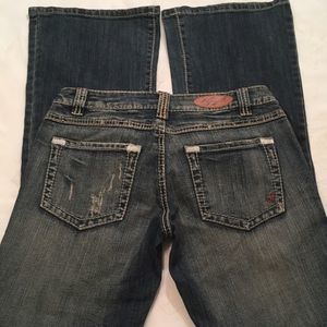 Infusion brand distressed dark denim blue jeans size 28. New with tags. Measurements: