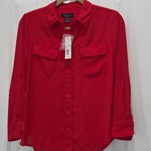 NWT Investments Petite Red “Olivia” Blouse, Size SP
