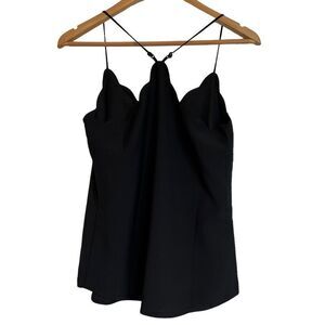 NWT J. By J. Crew Scallop Racer Back Cami, black, adjustable spaghetti straps.