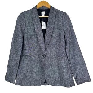 NWT J.CREW 100% Linen One-Button Jacket Blazer Gray Chambray Size 2