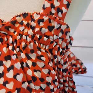 Adorable silk cold shoulder blouse in cute heart print pattern. New with tags!