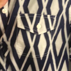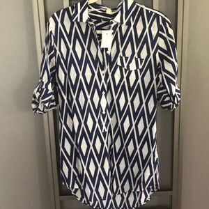NWT J.Crew Navy and white diamond print half Button-down tunic, top size small