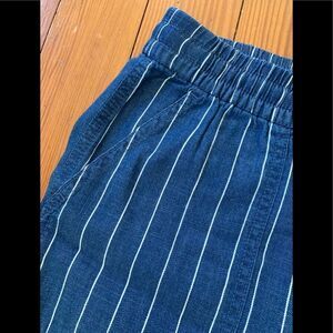 NWT. Blue with white stripes. Pockets in back and front. Elastic waist with tie. Size XS