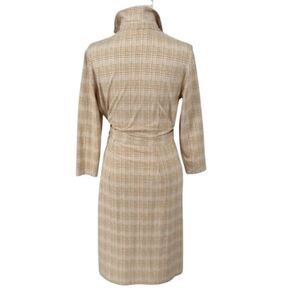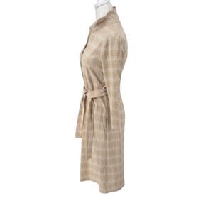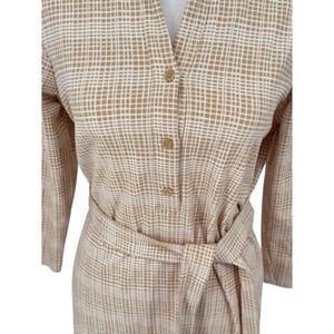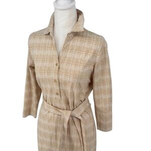 NWT J.McLaughlin Calla Grid Print Shirt Dress XS Beige White Tie Belt 3/4 Sleeve