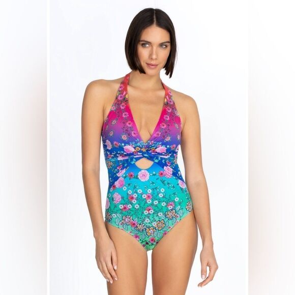 NWT JOHNNY WAS RAINBOW TWIST KEYHOLE ONE PIECE