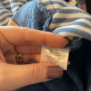 NWT Jadelynn Brooke Pom Pom Hoodie Pullover Poolside Blue Striped Small. New with tag condition. Smoke free home. 19 inch bust and 24 inch length. Bin 12