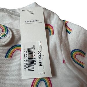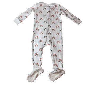 Super cute! White with rainbows. 100% cotton. Full zipper sleeper with slip resistant feet. 6-12 Months.