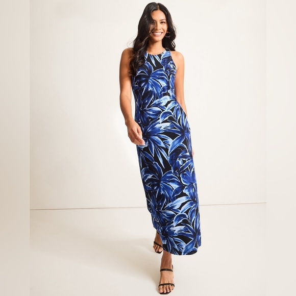 NWT! Maximize your impact and make an entrance in this ultra-flattering sleeveless dress, featuring a mesmerizing blue floral print that adds artistic value and undeniable interest, making it perfect for elevated special occasions.