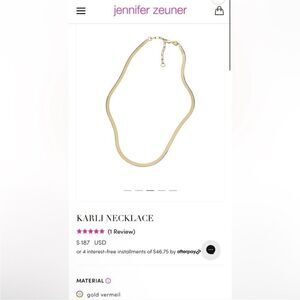 NWT Jennifer Zeuner Karli Necklace Gold Plated