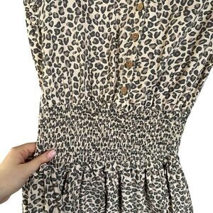 NWT Jessica Simpson Smocked Leopard Print Button Front Dress Black Tan