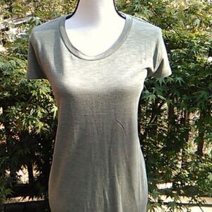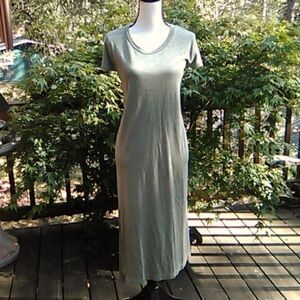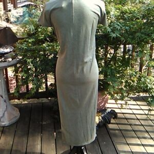 Pretty marled loden green shift, slightly longer in back. Cap sleeves. Size XL measures 45 at chest, 46 at waist, 48 at hips, 45 long from shoulder to hem, 3 inches longer in back. The perfect loungewear, cover up, or sleepwear. Comfortable and great looking.