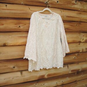 NWT John Mark Cream Boho Velvet Embossed Tunic Top