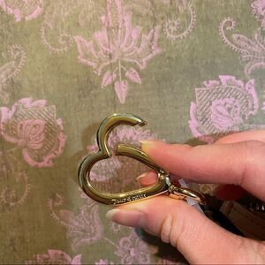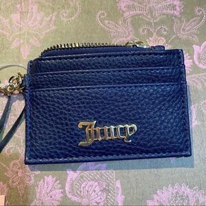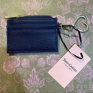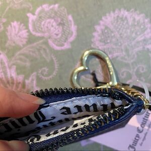 Comes with gold heart keychain. Has 2 card slots on each side, so 4 in total. And gold detailing. There’s gold writing on the front and back of card holder and gold zipper with juicy couture engraved in them. The interior is black and white and has gothic writing.