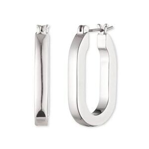 NWT~KARL LAGERFELD Classic High Polished Silver Oval Hoop Earrings