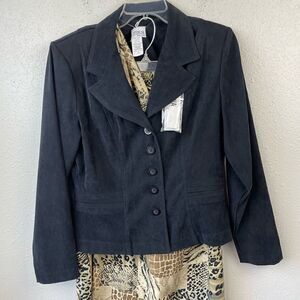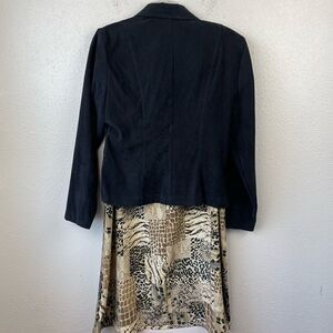 Love this super stylish and unique outfit by K.C. Spencer! Get ready for compliments! The jacket measures 20 inches armpit to armpit lying flat and is 22 inches in length from shoulder to hem. The lined skirt measures 15 inches at the waist laying flat and is 36 inches in length.