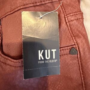 NWT KUT from the Kloth Connie High Rise Fab Ab Ankle Skiny Jeans Coated Snake skin textured. Wine 8. Brand new! Excellent condition. See photos for details and unstretched measurements. Shop my closet and bundle multiple items for discounts and one shipping fee!