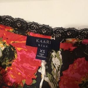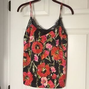 Brand New. Gorgeous red and ink poppy print on black in this silky feeling KAARI blue brand camisole. Zoom in to appreciate this gorgeous print. Black solitaire lace trim at top. 100% polyester, machine wash. Size available: Various - see other listing in lingerie.