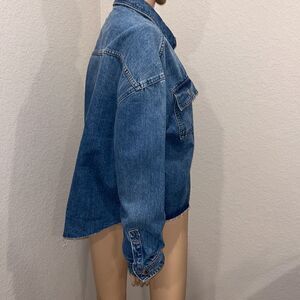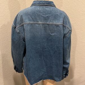 NWT Karl Lagerfeld crop Jean jacket, pit to pit 22”, length approximately 21-21.5”, sleeves 20.5”.
