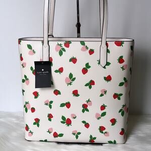 NWT💃Kate Spade Jana Tossed Strawberry Printed Tote/White/ Saffiano