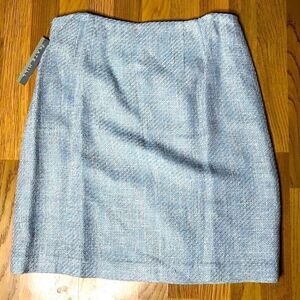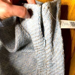 Cute size 16 Kate Hill tweed pencil style skirt. Light blue in color with light tan, almost looks like gold throughout. Functional side clasp and zipper closure. Smooth satin feel underlining to help provide a flawless and comfortable look.. Totally gives retro chic/retro office chic vibes. This skirt is new with tags and has no known flaws. Comes from a smoke free home.