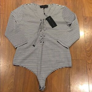 NWT Kendall & Kylie Striped Bodysuit Size Large