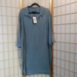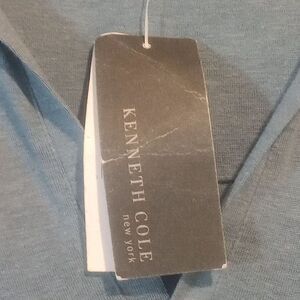 Blue linen blend polo from Kenneth Cole Reaction. Size 2XT. New with tags. Accent front stitching. 85% rayon, 15% linen. Machine washable. Made in China. Excellent condition. Nonsmoking home.