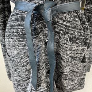 Beautiful and stylish wool blend belted long cardigan style sweater top by Kenneth Cole New York. It measures 20 inches armpit to armpit and is 33 inches in length. It’s in new condition with tags.