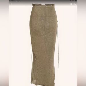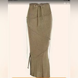 🥂This NWT🥂Knit Khaki Maxi Paper bag Skirt is stunning. It says so much without saying anything at all. So soft and has wonderful stretch. Dressed up or down, all eyes will be on you.
