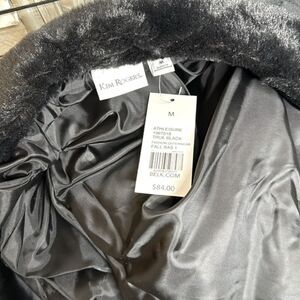 NWT Kim Rogers Black Puffer Fleece Collared Jacket Coat