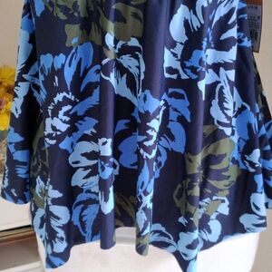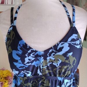 NWT Dark floral swim top with handkerchief hem. Padded built in bra. Adjustable double straps. Size L (12-14) Wear this with swim bottoms or as a top with jeans and shorts. Perfect for Summer, and NEW.