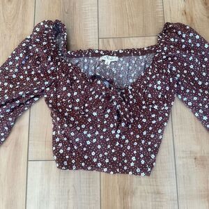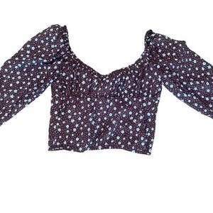 NWT L.A. Hearts-PacSun Cold Shoulder Floral Crop Top Brown/White Size Small