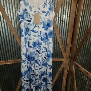 NWT~LADIES Blue & White Floral Print Long Dress w/Long Sheer Cover Up~Medium