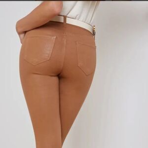 The beloved Margot with a subtle, yet stunning sheen in a warm tan color. The tapered leg hugs from hip to ankle, while the contoured waistband defines and slims the natural waist. A lightweight, light-catching coating is added to our premium stretch denim for an element of statement-making sophistication.