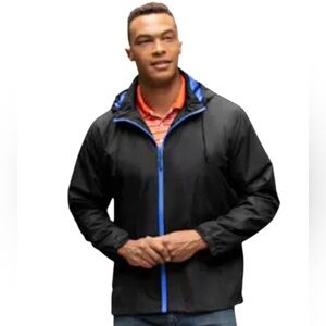 NWT🌟LANDS’ END Black/Blue Unisex Packable Rain Jacket outdoor rain Large…