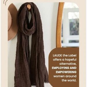 Elevate your style with this beautiful LAUDE the Label Bubble Gauze Scarf in Carob Chocolate Brown. The scarf is perfect for any occasion and can be worn in a variety of ways. It features fringe ends and is made of high-quality cotton material, making it comfortable to wear all day long.