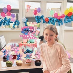 NWT LILO & Stitch Birthday Party Backdrop Decorations Balloons Cake Topper